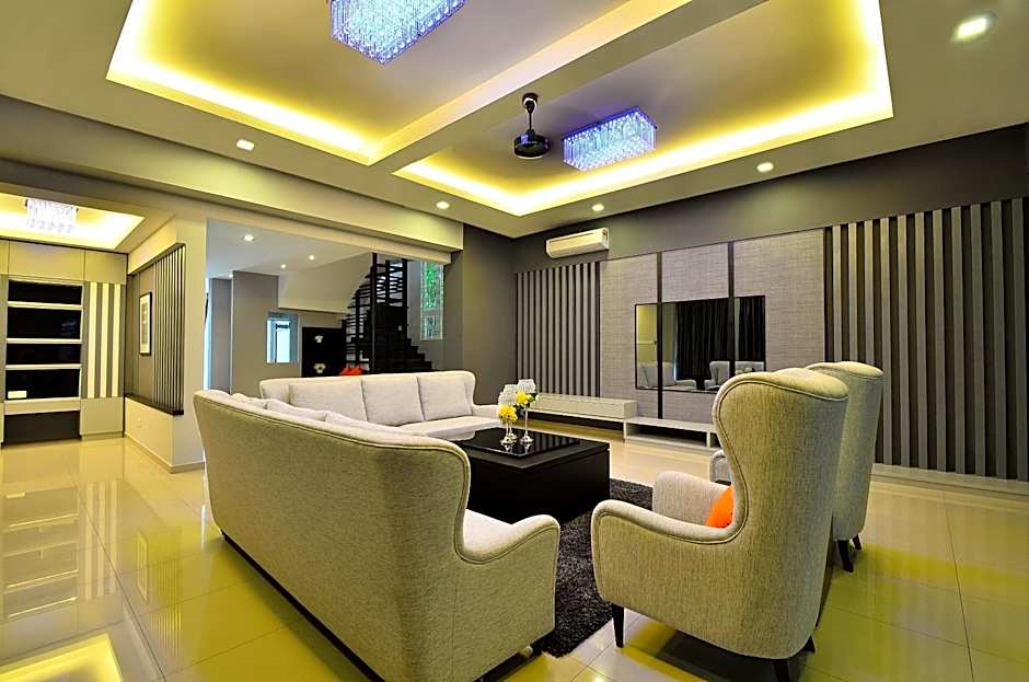 After a refreshing dip in the outdoor pool, why not take a leisurely stroll around the lush gardens that surround the Violet Luxury Service Villa? The well-maintained outdoor space provides the perfect backdrop for a relaxing afternoon, whether you're soaking up the tropical sunshine or enjoying a quiet read on your private balcony. With the serene environment and charming views, it’s easy to forget you’re just a short drive from the vibrant Batu Feringgi area.